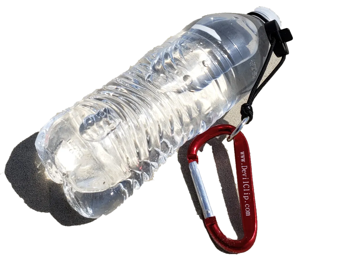Simply clip your bottle to your bag, your belt loop, or a Devil Clip Cross-Body Strap and it is Guaranteed to NEVER come loose.